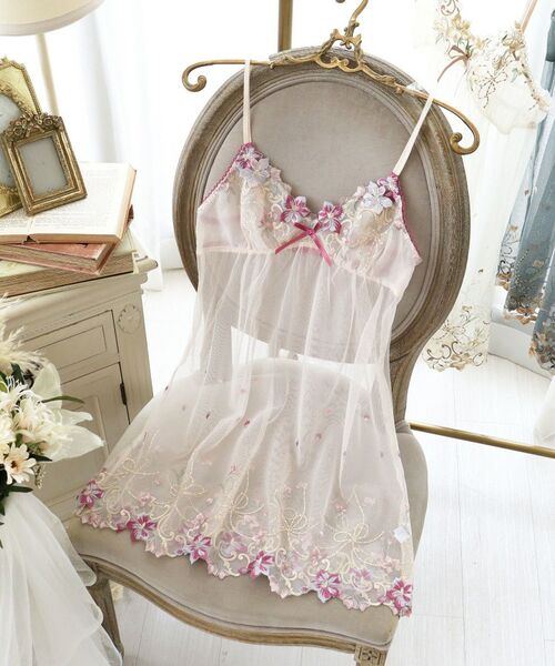 ユリの女王、カサブランカのお花をイメージしたシリーズです。カサブランカをモチーフにしたインパクトのあるお花は、密度のあるステッチで美しい光沢感を演出。ロープタッセルのようなドット柄のリボンや、多彩なモチーフを大胆に組み合わせて、どこかエスニック感のある印象に仕上がりました。バスト部分にはカサブランカのアップリケを重ねることで、エンブレースとは異なるカラーリングが加わり、お花1つ1つが引き立つ豪華で奥行きのあるデザインに。バックスタイルにはギャザーフリルをあしらい、上品な可愛らしさをプラスしました。ラメ糸の輝きとカサブランカの高貴な気品あふれる世界観が、思わず目をひくコレクションです。