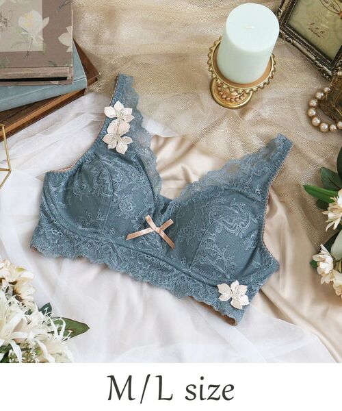 ユリの女王、カサブランカのお花をイメージしたシリーズです。おやすみブラはワイヤーブラと印象を変え、リラックスタイムをサポートできるレーシーなデザインに仕上がりました。アシンメトリーにあしらわれたカサブランカのアップリケは、密度のあるステッチで美しい光沢感と、気品あふれる女性らしさを表現。斬新なカラーリングでどこかエスニック感のある世界観を演出した、思わず目をひくコレクションです。