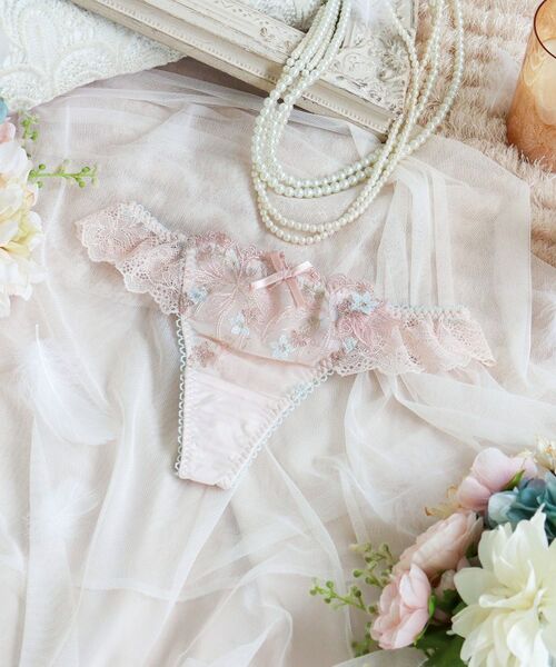 ウエストからバック部分にかけて総レース仕様になっております。Tバックショーツは他のショーツに比べ布面積が少ないため通気性がよく、ムレにくいため快適にご着用いただけます。ショーツのラインが気にならないため、ボトムスの種類を問わず幅広くご着用いただけます。バック部分が肌触りの優しいレースのため、Tバックショーツが初めての方もご着用していただきやすいデザインです。