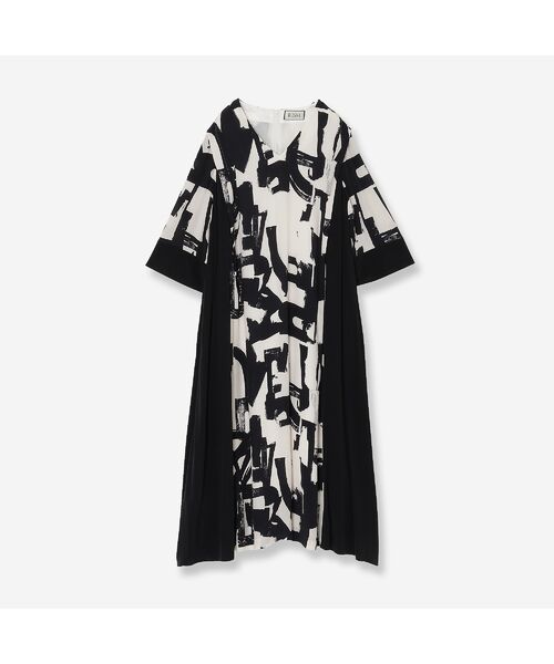 トルコ「IPEKER社」の優しくもインパクトのあるアートプリント生地を使用した華やかで上品なワンピース。