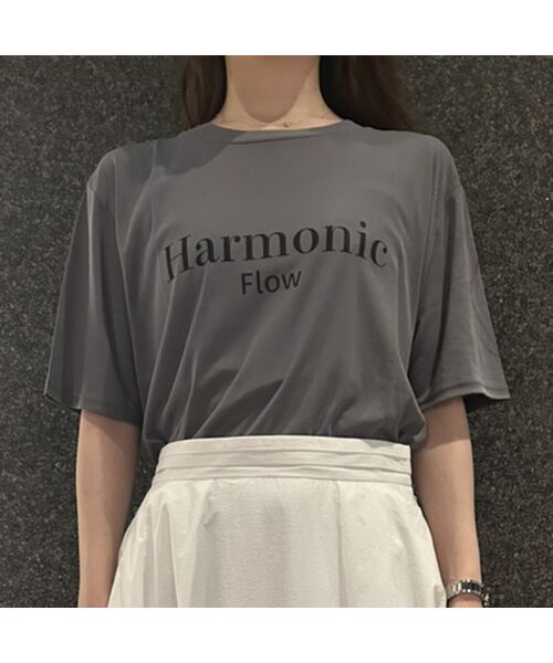 主張しすぎない優しい配色のロゴプリントはジャケットやカーディガンとの上品なスタイルにも相性抜群。