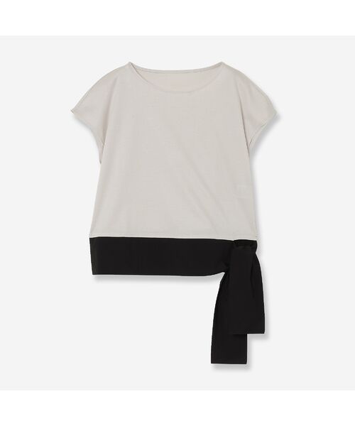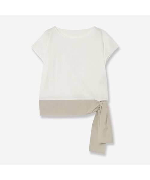 裾にあしらったリボンがフェミニンムード漂う異素材MIXカットソー。