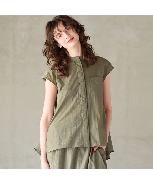 【セットアップ対応】【撥水加工・接触冷感】バックフリルイージーブラウス