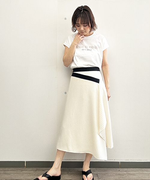 Tシャツなどと合わせるだけで、女性らしいカジュアルスタイルが完成します。