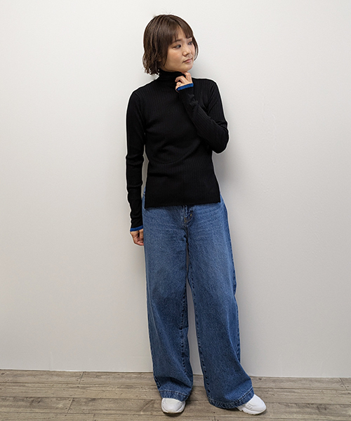 ワイドデニムでもカジュアルに映りすぎない、女性らしく上品な印象に仕上げたR-ISMらしい一本。