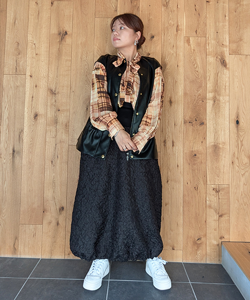 とろみのあるリボンタイシャツTとデニムでトレンドライクなスタイルや、無地のロンTにフレアスカートを合わせてトラッドなスタイルもおすすめ。