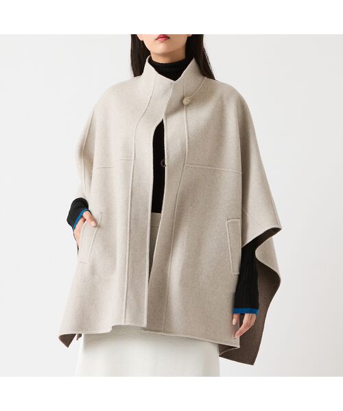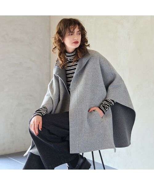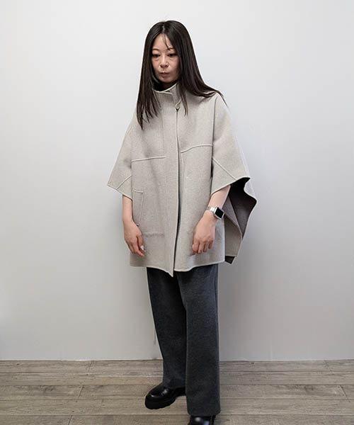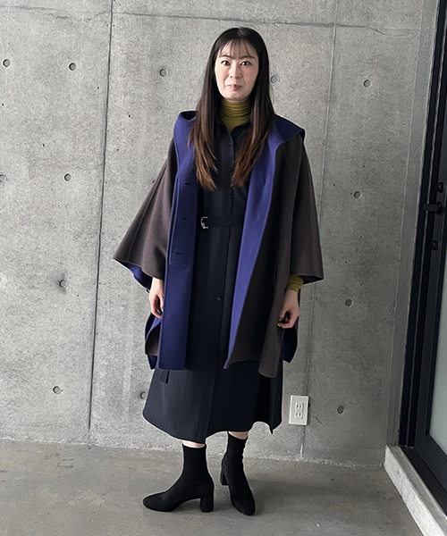 長く愛用していただけるようなシンプルさでありながら、ウールリバー生地を使用した裏地の付かない軽くて暖かいポンチョコートです。