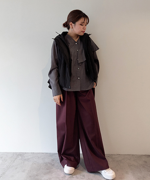 ・フロント部分は比翼仕立てにし、ファスナーを隠すことによってカジュアル過ぎない仕上がり