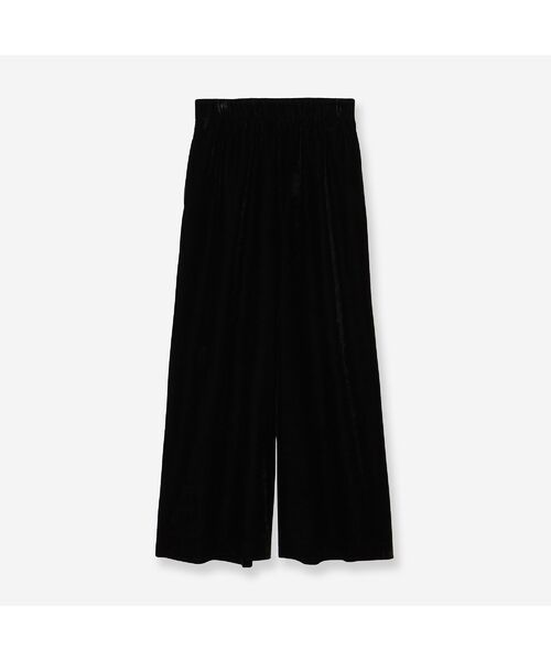トレンドのベルベット生地を使用したとろみのある落ち感がすっきりとしたレッグラインを演出します。