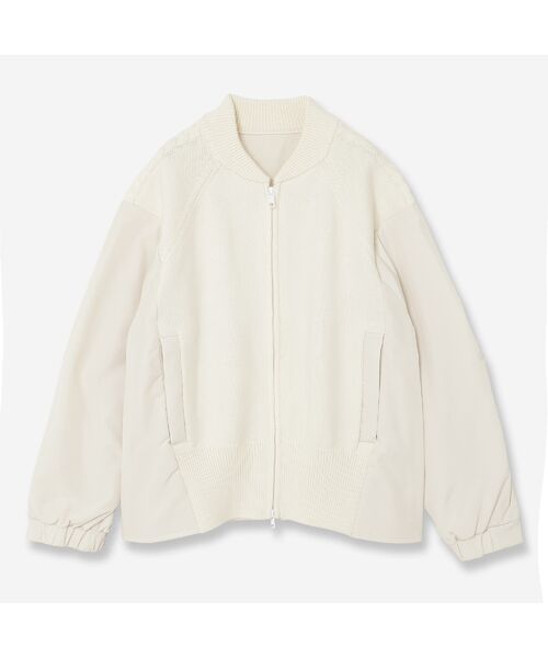 ニット素材とタフタ素材を大胆に切り替えたブルゾン。