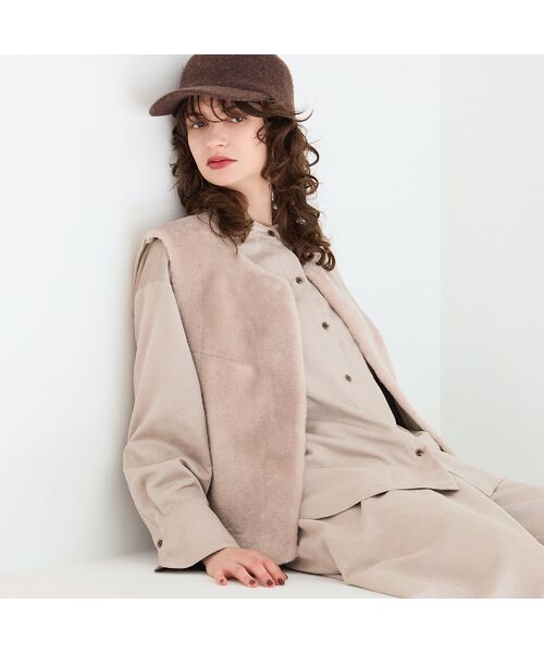 前がフェイクムートンで後ろがニットの切替ベスト。