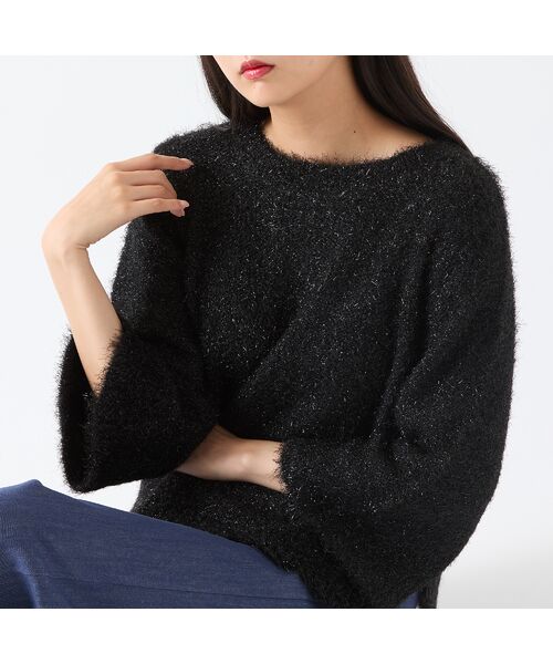 柔らかなモヘヤにラメ糸を編み込んだローゲージニットプルオーバー。