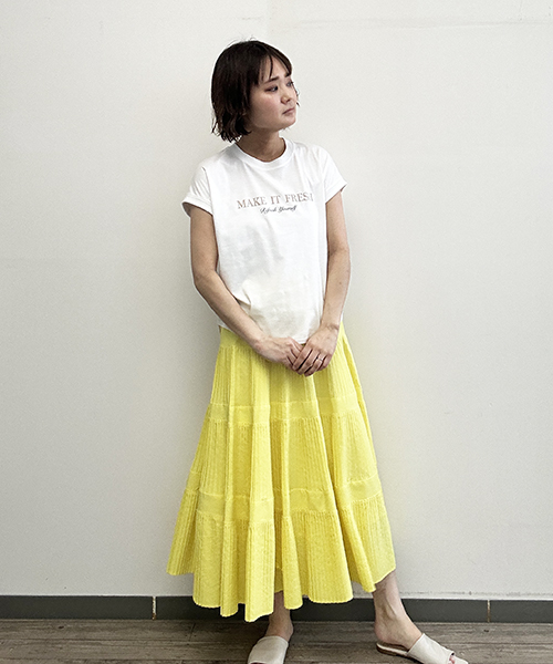 フラットな部分と掛け合わせることでティアードデザインが引き立っており、立体感も加わった着映えアイテムです。