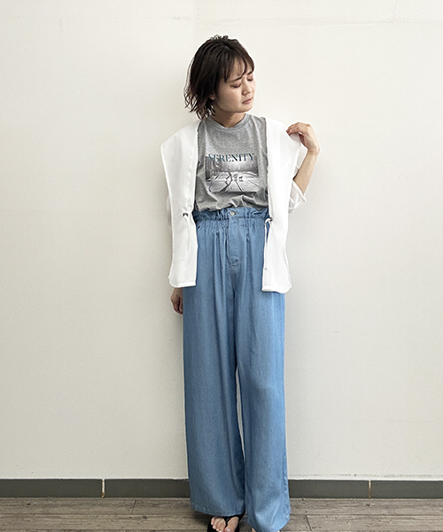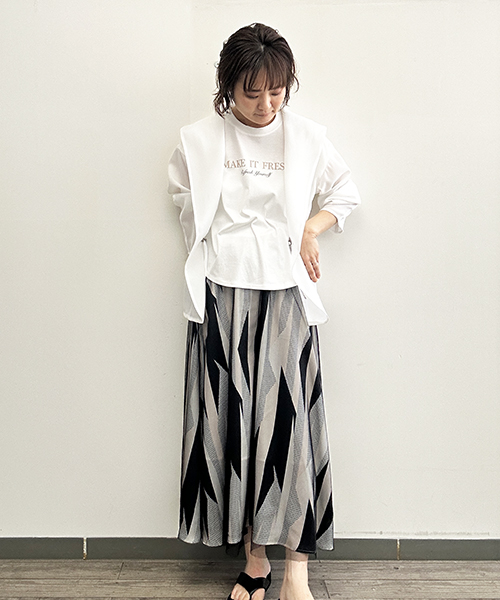 1枚ではもちろん、ジレやベスト等とレイヤードしたり、キャミワンピースやジャンスカ、ジャケットのインナーにもオススメです。