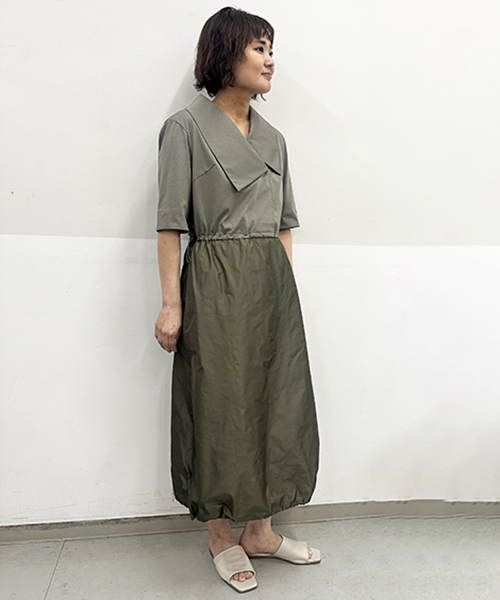 緩やかに広がりをもたせたAラインシルエットが大人の女性らしさを演出。