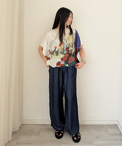 ・シャツの裾を前だけインして、後ろはミドル丈を活かして流すと、腰回りをカバーしつつ脚長効果が出ます。