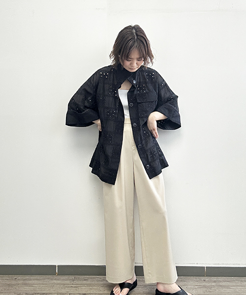 ・羽織りとしても着用可能。デニムと合わせて大人カジュアルなスタイリングもおすすめ。