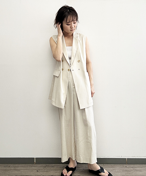 ・同素材のジレと合わせることで、洗練されたオフィススタイルが完成します。