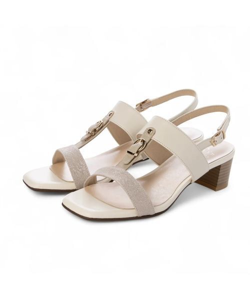 前側のベルトにはさりげないラメ素材を施し、シンプルながらも華やかさをプラス。