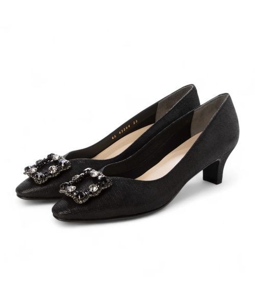 大小に散りばめられたビジューが目を惹く煌びやかなパンプス。