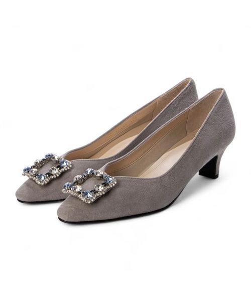 色合いの違うラインストーンは他にあまりなく、スエードでしか出せない優しい色合いでリュクスな仕上がりに。