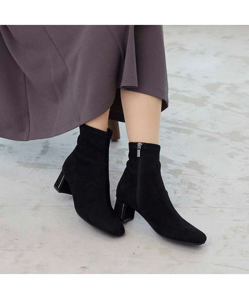 ヒール裏のメタリックパーツが歩くたびにさり気なく輝き、今シーズンにピッタリな冬ムード漂う1足に。