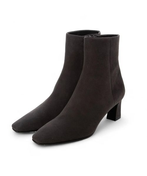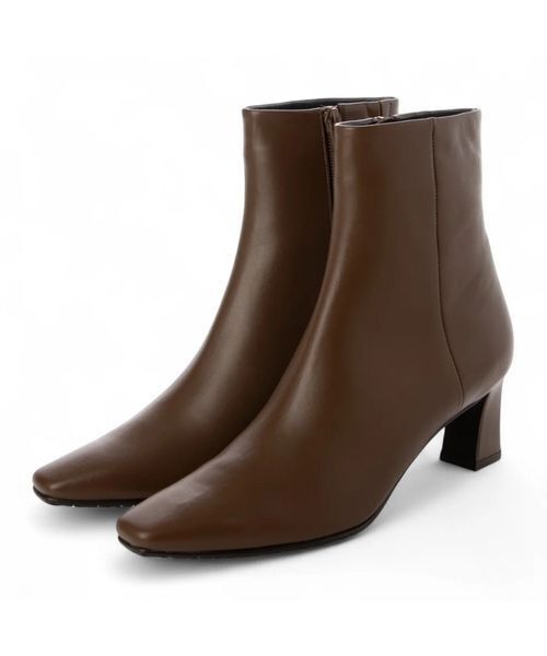 のびの良いスクエアトゥラストと目を惹くコンマヒールでトレンド感のあるきれいめブーツに仕上がりました。