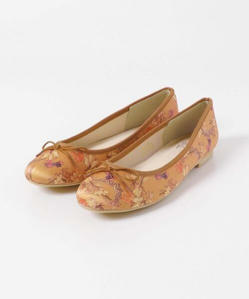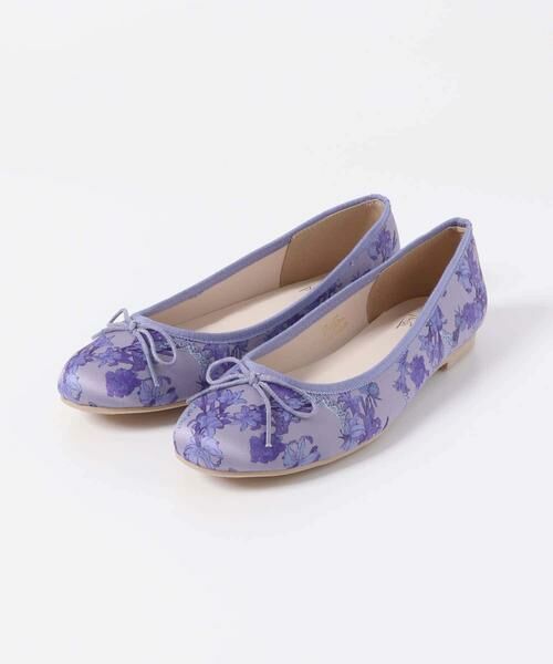 ベーシックなバレエシューズに上品な花柄をあしらった一足。