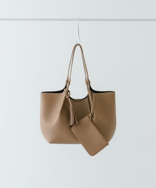 柔らかな素材が特徴のトートバッグ。A4サイズが収納可能でお仕事バッグとしてもおすすめ。大きめのポーチ付なので、定期など細かい荷物の小分けも可能。