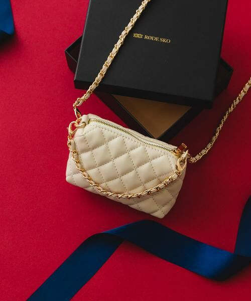 キルティングがアクセントのナノバッグ。リップや鍵など最低限の荷物が入るサイズ感。