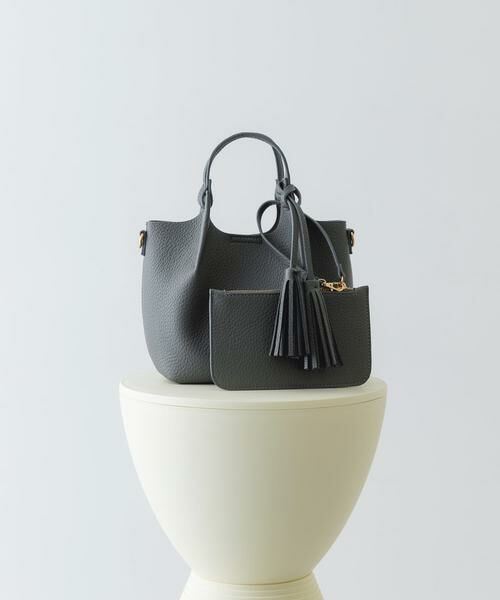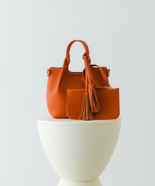 大き目のポーチとタッセルがポイントのハンドバッグ
