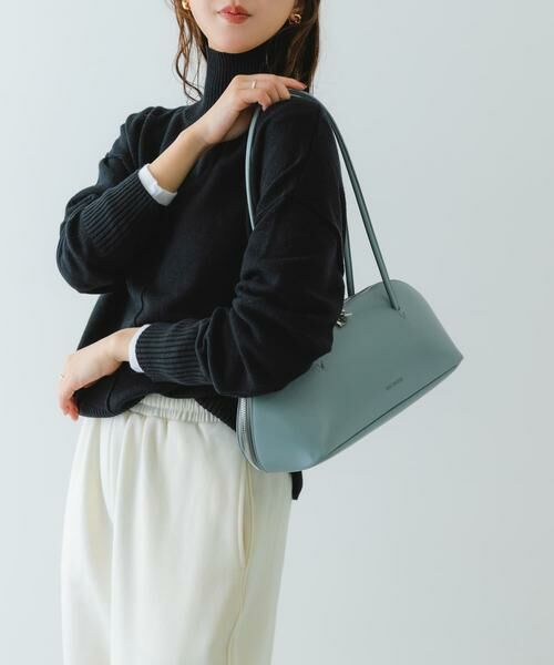 ヴィンテージのような光沢と質感が特徴のヴィーガンレザーを使用。ラウンドボディーに細いハンドルがエレガンス感を与え、オンオフどちらでも使用できるアイテムとなっています。