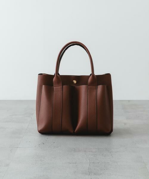 バッグ内部にはインポーチ付きで荷物の整頓がしやすくポーチだけでの使用も可能◎A4サイズ収納可能の為、お仕事用バッグにもオススメのサイズ感。サイドのスナップボタンで幅の調整もして頂けます◎