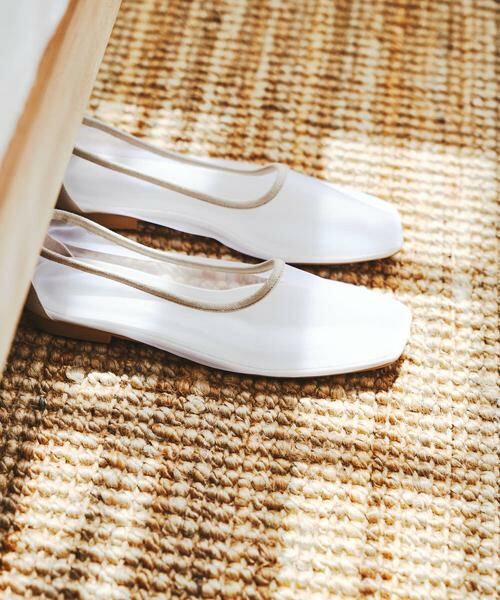トレンドのシアー素材をあしらったフラットシューズ。抜け感を演出してくれ、こなれ感のあるコーディネートに。