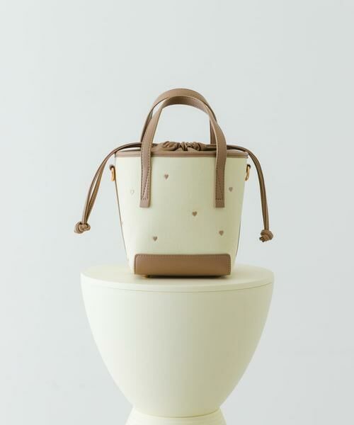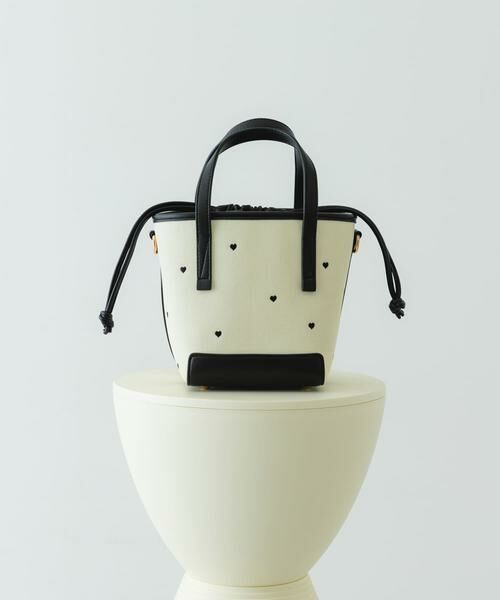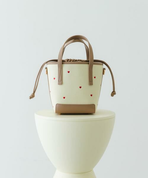 上品な印象を演出してくれるキャンバス生地にハートモチーフを刺繍したデザインバッグ。