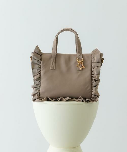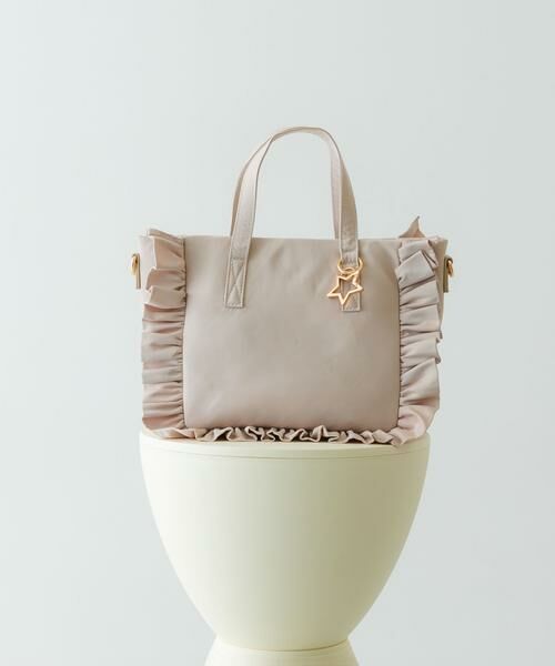 フリルデザインがポイントのトートバッグ。