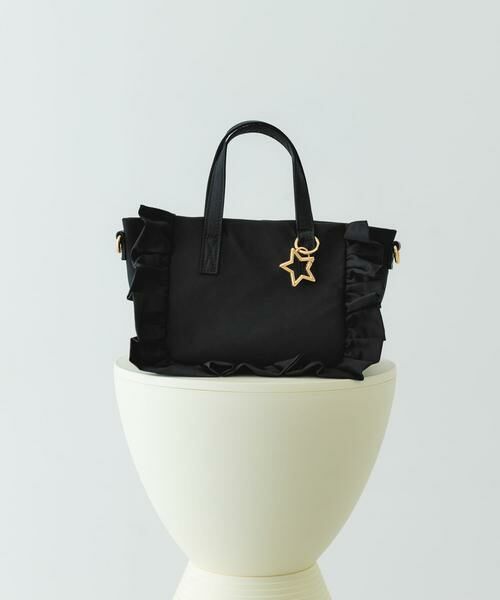 フリルデザインがポイントのトートバッグ。