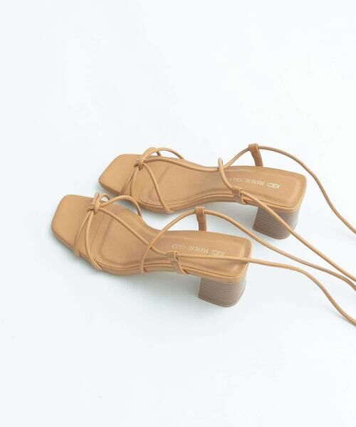 レースアップのデザインが今年らしいアンクルストラップサンダル。安定感のあるほどよいヒールと、ヌーディーカラーが足元を上品に演出。スカートでレディライクに、パンツと合わせて外しアイテムとしても◎パンツをインして裾を絞るスタイリングがワンランクアップした足元になっておすすめです。