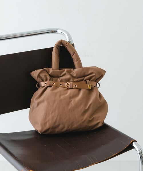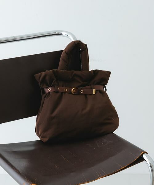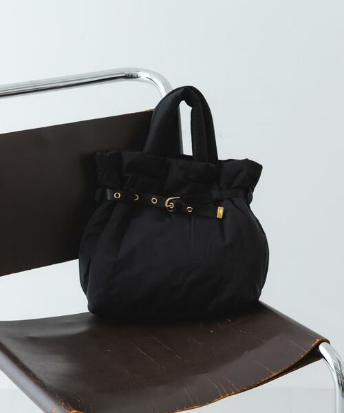 ころんとしたフォルムとベルトデザインが目を引く、デザインバッグ。