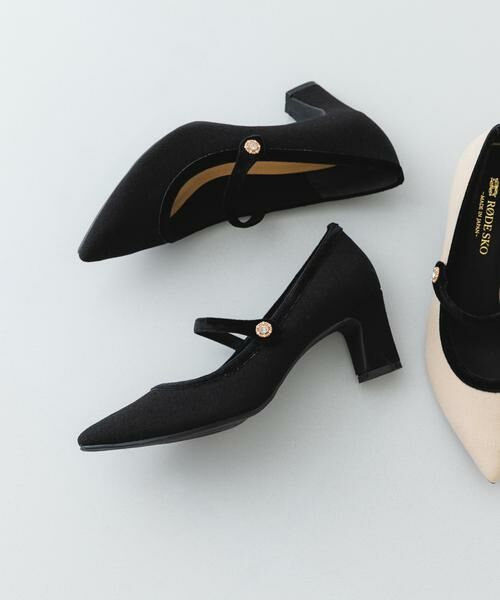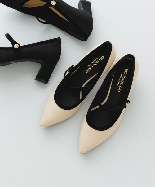 ストラップにはキラキラと輝くビジューが付いており、さりげない華やかさをプラス。つま先はポインテッドトゥで足元をシャープに見せ甲の開きが女性らしさを引き立てます。