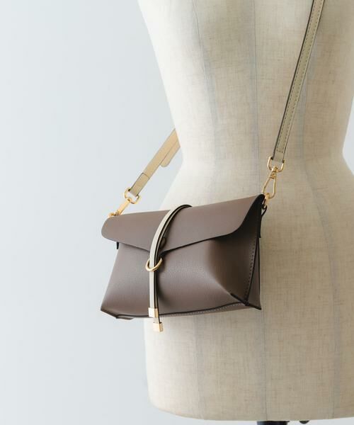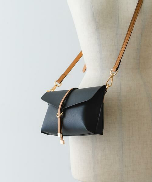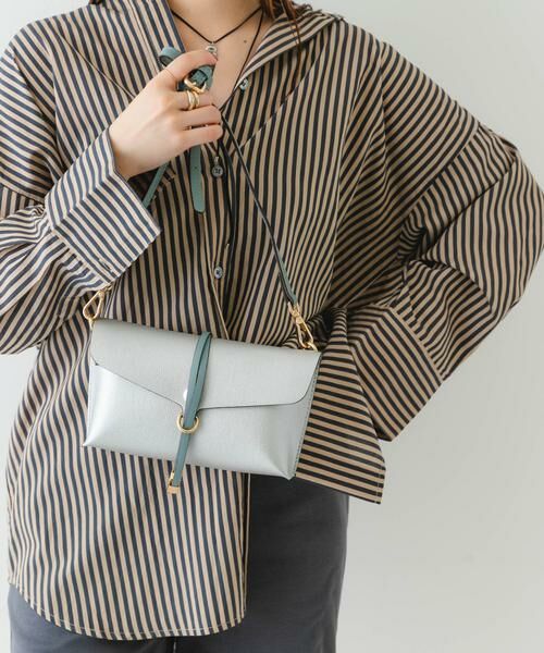 横型で幅広のデザイン。内部には仕切りが付いており、荷物の整理がしやすい仕様です。コンパクトながらも最低限の荷物をしっかり収納でき、フロントのベルトとショルダー紐は本体とバイカラーでアクセントに。ちょっとしたお出かけにもぴったりのサイズ感です。