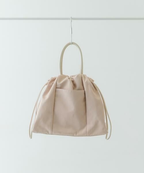 サイドのドロストを絞れば、トレンド感のあるコンパクトなフォルムに。緩めれば、荷物が増えた時にも対応できるゆったりとしたシルエットになります。持ち手には、しなやかな合成皮革素材を使用し、持つたびに手に馴染みます。