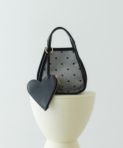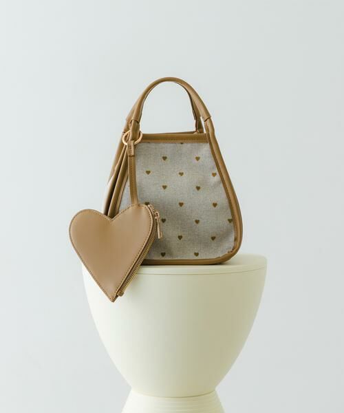 ハート柄のキャンバス生地とポーチがアクセントになるハンドバッグ