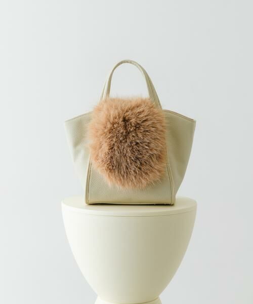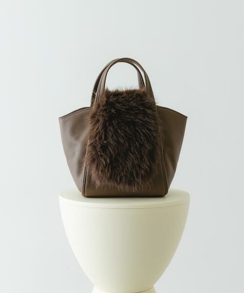 フェイクレザーのハンドバッグにフラッフィー素材を重ねたデザイン。フラッフィー部分は取り外し可能で、気分やコーディネートに合わせて使い分けられます。上品な印象をキープしつつ、シンプルなハンドバッグとしても使用できる便利な一品です。