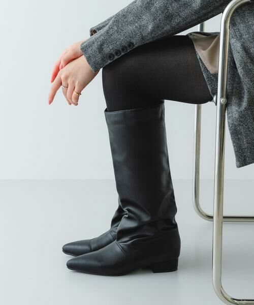 筒周りにゆとりを持たせたワイドなデザインで洗礼された印象に。くしゅっとした自然なドレープ感が生まれ、足元に抜け感とこなれ感を与えてくれます。シャープなポインテッドトゥがエレガントで、カジュアルになりすぎないのもポイント。