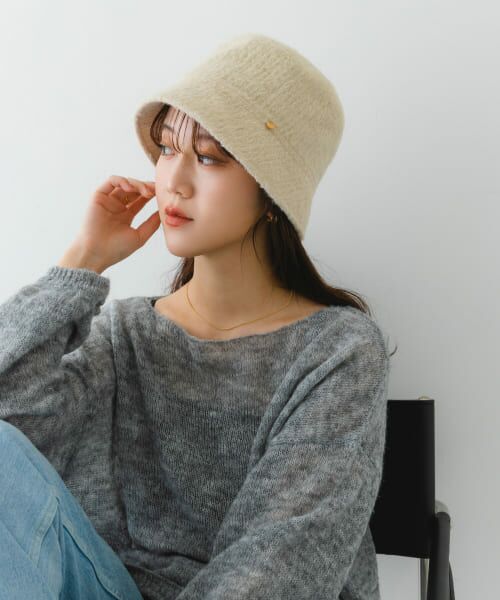 取り外し可能なチュールコードがアクセントになるバケットハット。
