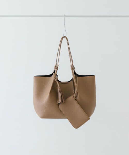 柔らかな素材が特徴のトートバッグ。A4サイズが収納可能でお仕事バッグとしてもおすすめ。大きめのポーチ付なので、定期など細かい荷物の小分けも可能。