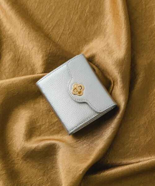 フラワー型をかたどったオリジナルの金具がさりげなく輝くコンパクト財布。