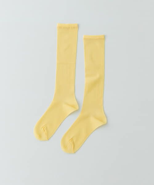 極細番手のナイロン糸を使用したシアーハイソックスです。サンダルでもきれいに合わせられるよう、つま先・カカトもシアーな編地にしています。つま先上部の縫い目を足底に持っていきごろつきがないスムースな仕上げでサンダルでも縫い目が邪魔にならないようなデザインになっています。