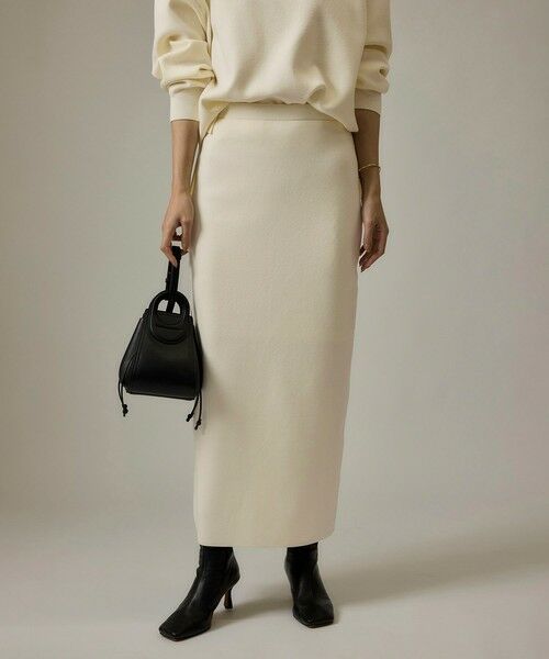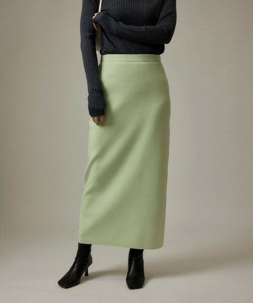 クリーンな編み地と肉感を生かしたシンプルなIラインスカートです。深めのバックスリットで足さばきもよく、女性らしさも演出してくれます。